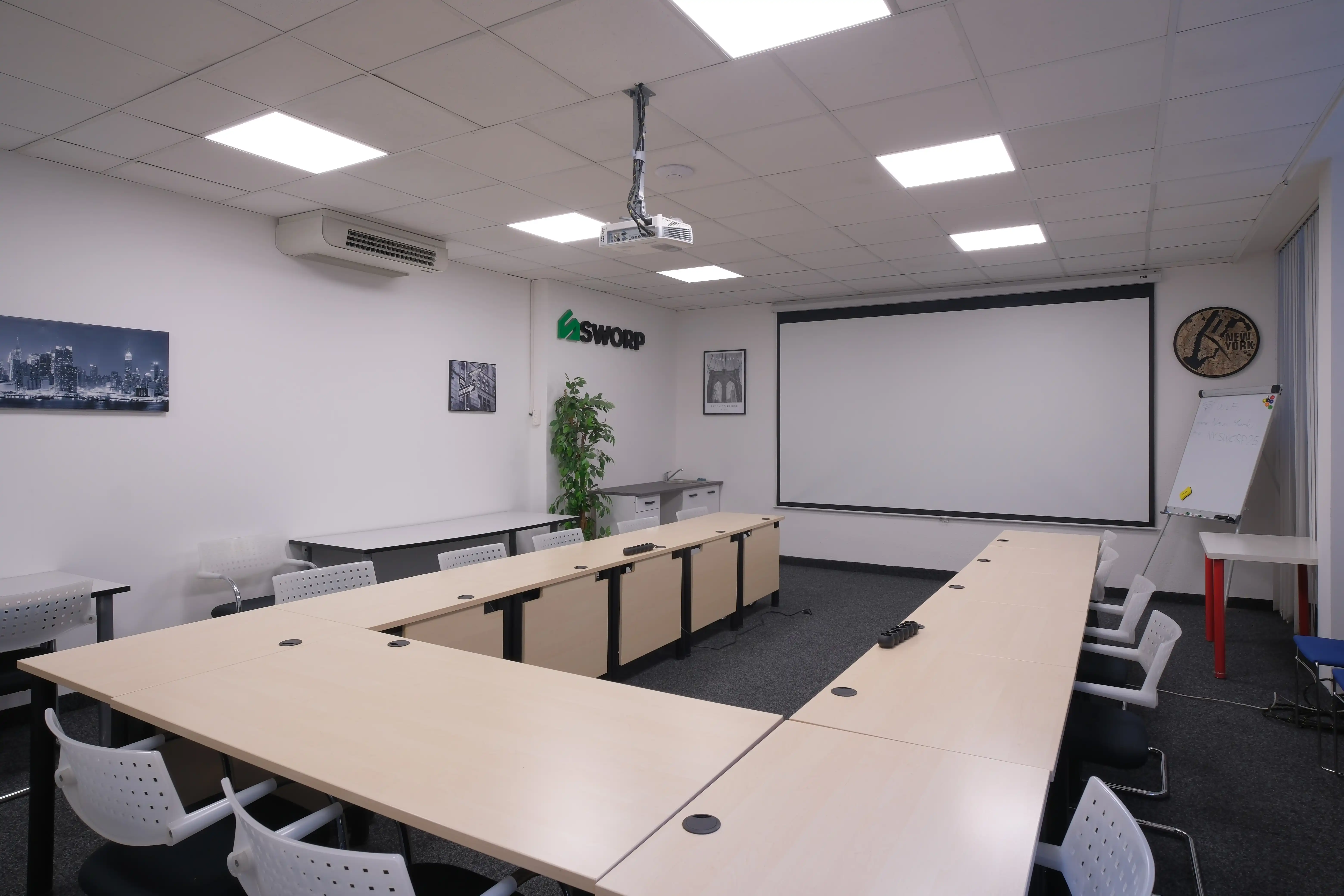 Všechny prostory se nachází v sídle SWORP HOUSE v Praze Strašnicích. Budova nabízí moderní zázemí pro školení, konference, workshopy i firemní večírky.